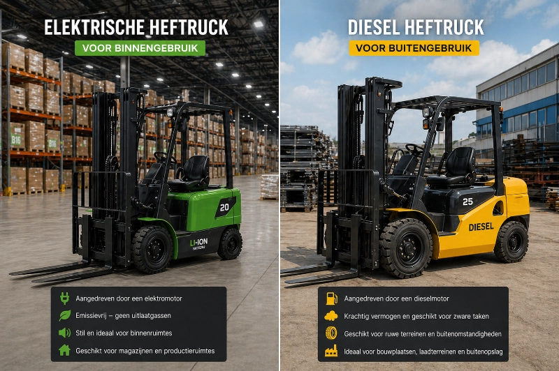 - Elektrische heftrucks: ideaal voor binnengebruik in magazijnen